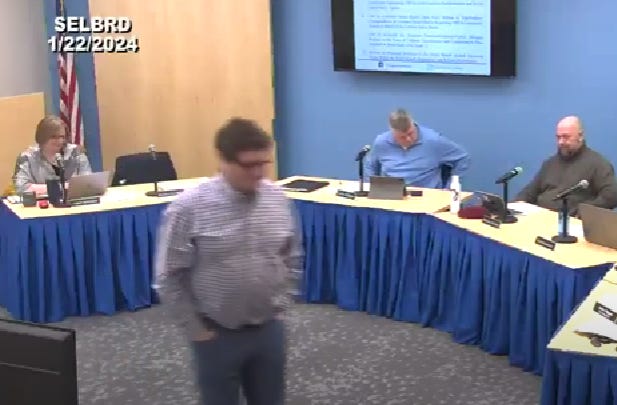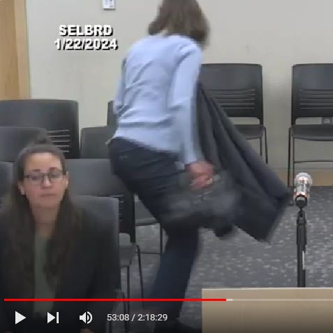 I’m also not filing an ethics complaint about your coming back into the room on January 22nd. The Select Board has a Code of Conduct. Your peer board members can address this with you if they want—or not. They didn’t say a word about what you did on September 5, 2023, so hard to know if they are going to care much about what you did ten days ago.