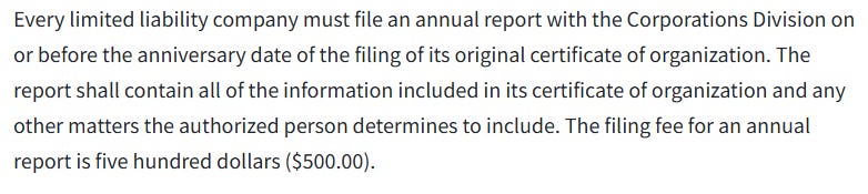 Neither Wilson nor Decoste filed an annual report with the Secretary of the Commonwealth for 2024 or 2025 despite the requirement to do so.