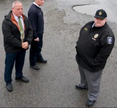Here’s a photo of Karr and former Chief of Police Matthew King, aka, the guy who paid $25,000 to his rape victim to get her to not move forward on the criminal case against him in 1997.