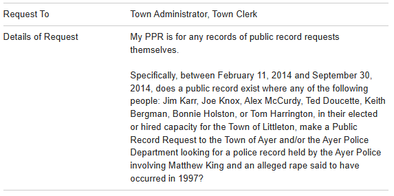 - GINNED UP established, through the publication of approximately two hundred eighty thousand words (280,000), that the Littleton Police Department—under then-Chief Kelly’s administration—and the then-Board of Selectmen members—Ted Doucette, Alex McCurdy, Jim Karr, and Joseph Knox—engaged in a cover-up of the alleged digital rape committed by King.